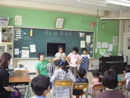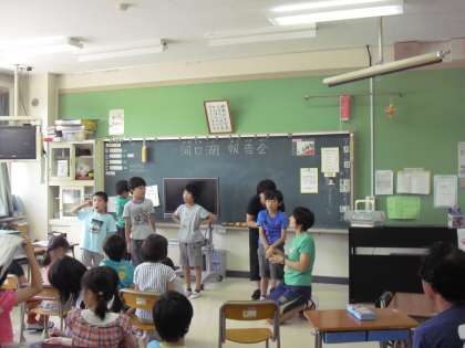 先週行われた移動教室の報告会を仲よし学級の教室でしました。