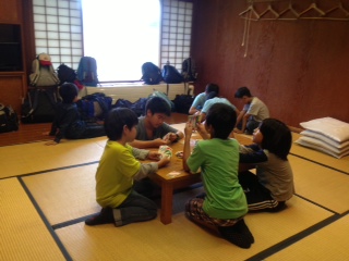 男子部屋でもゲームが始まりました。足を伸ばしてゆったりです。