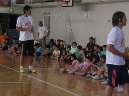 お二人が子供たちに話して下さった、「ワン フォー オール(一人はみんなのために)」「シンキングハンドベース(次を予測したりするなど、常によく考えるハンドボール)」「親孝行するために一生懸命頑張る」という言葉が、光っていました。