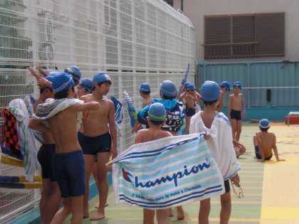 今日から、夏季休業中の水泳指導が始まりました。前半後半合わせて15回設定されています。今日は初日のせいか、参加人数がとても多かったです。今日にも梅雨明け宣言されるようで、とても暑く最高のプール日和となりました。