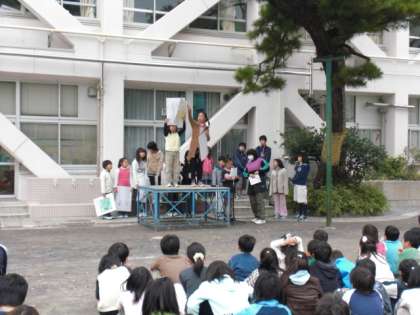 11月19日(木)の朝、「ユニセフ集会」を行いました。ユニセフの活動についてと募金をすることで、どんなことができるのかなど、代表委員会の皆さんが説明してくれました。