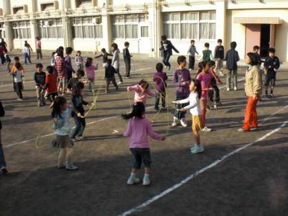 11月24日(火)から「なわとび週間」が始まりした。なわとび運動を通して、体力の向上と巧みな動きや調整力・持久力を高めるために全校で取り組みます。このなわとび週間の期間には、高学年児童が、跳び方の紹介をしたり、下級生に跳び方のコツを教えたりします。また、クラスごとに長なわとびの連続記録にも挑戦します。一人一人が目標をもって取り組めるように励ましながら指導しています。