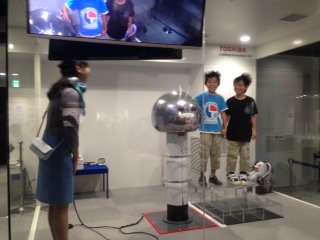 そこで最初の見学先は、川崎にある東芝未来科学館でした。科学の歴史はからくり人形のからくりから…をみせていただき驚いていました。さらに三種の神器と言われた昭和初期に作られた洗濯機、冷蔵庫、掃除機も見せていただきました。その後、館内の自由見学、科学体験をしてさらに科学の進歩に驚いていました。3人ノーベル賞に輝いた日本の底力を肌で感じた一時でした。
