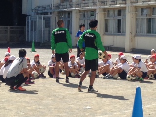 14日は、高学年対象のサッカー体験教室を開催しました。東京ベルディの選手の皆さんが来校して、子供たちに上手に教えてくださいました。男子も女子も夢中でサッカーボールを追いかけていました。さすがに本物は子供たちの心をしっかり引きつけ、わずかな時間でも技能も高めてくれます。