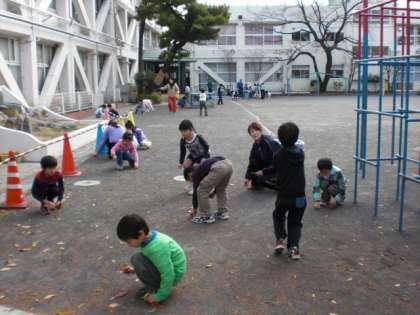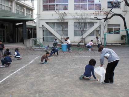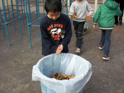 12月7日(月)の朝、1.2年生合同で校庭の落ち葉を拾いました。校庭にある落ち葉を拾うことで環境に対する意識を高めるとともに季節感も味わうことができます。