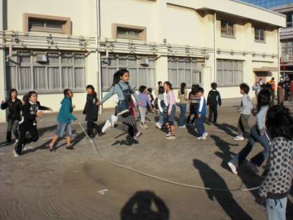 12月8日(火)の朝、長なわとび集会で各クラスごとに3分間の「連続8の字跳び」に挑戦しました。1学期にも挑戦しましたが、前回は波跳びだった1年生は、今回はみんなと同じ連続8の字跳びで臨みました。今回は各クラスともに前回の記録を更新する意気込みで取り組みました。その結果、全クラスの合計で210回も多く跳ぶことができました。一番回数を増やしたクラスは4年生で前回を69回も更新しました。なわとび週間は終了しましたが、こらからも体力と調整力などの向上を目指して、取り組みを続けてもらいたい思います。
