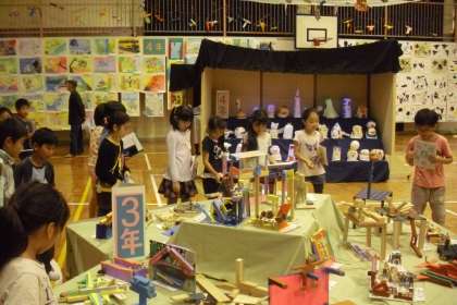 11月7日(金)8日(土)の2日間、本校の体育館で展覧会が開催されました。作品は図工科や家庭科の授業を中心に仕上げました。どの作品にも児童の個性が良く出ており、とても見応えがありました。