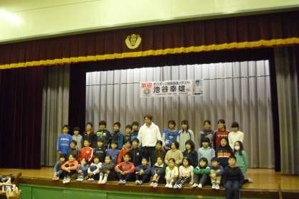 大勢の児童や保護者の方が参加し、池谷さんと一緒に多くのことを楽しく学びました。最後に池谷さんが獲得されたメダルに触れる機会を設けていただき、子どもたちも大喜びでした。本当にありがとうございました。