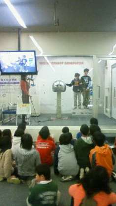 東芝科学館は、みんなで見学です。ガイドさんの案内でいろいろな体験をしました。そして、最後は実験を見学をして学校に帰りました。