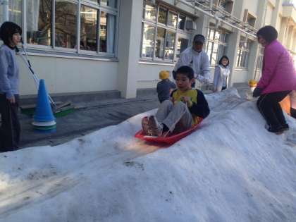 昨日からいぶきの会の皆様が作ってくださった雪の滑り台で楽しませていただいています。