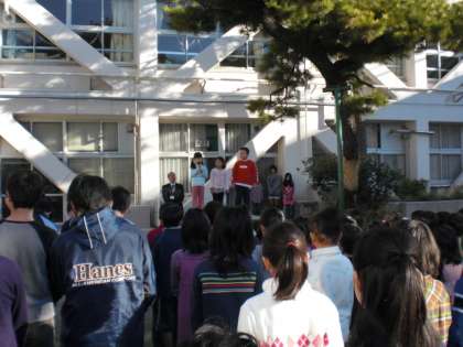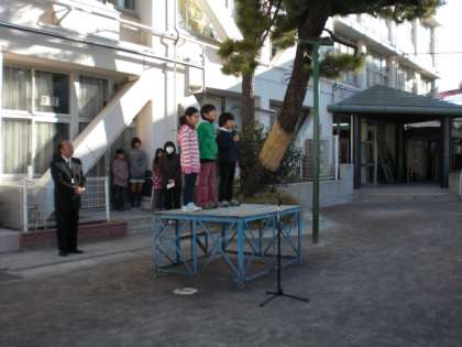 始業式では、校長先生のお話をしっかりと聞き、1年生と3年生の代表が3学期や新年の目標を発表してくれました。「校歌斉唱」も6年生の指揮により、寒さを吹き飛ばし、新しい目標に向かって大きな声で歌うことができました。始業式に参加する全員の態度も大変立派でした。