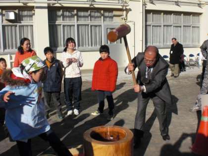 1月16日(土)の午前中は、世田谷小学校の開校記念もちつき大会でした。子ども達のために、朝7時からもちつき企画委員の皆様、PTA役員・委員の皆様、地域関係者の皆様、さらに地域ネット「いぶき」の会員の皆様がもちつき大会に参加してくださいました。もちつき企画委員長の指導のもと、重たい臼や杵、冷たい水、寒い風や日陰などにもかかわらず、おいしいおもちをついてくれました。昼からは、皆様がそろって楽しい昼食会となりました。ご参会くださいました皆様に、感謝申し上げます。