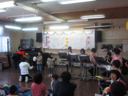 仲よし学級が「卒業・進級を祝う会」を音楽室で行いました。