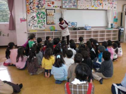 1月21日(木)は、すこやかキッズとの交流会を行いました。始めに自己紹介をしてから「はる なつ あき ふゆ」の歌を聞いてもらいました。そのあとは、立派な先輩として、身の回りのお世話をしてあげたり、一緒にリズムダンスを楽しんだりしました。最後は、仲良く読み聞かせの物語に聞き入っていました。