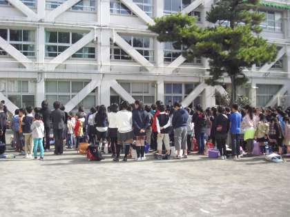 桜の花びらの舞う校庭で、平成27年度始業式がありました。