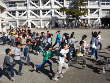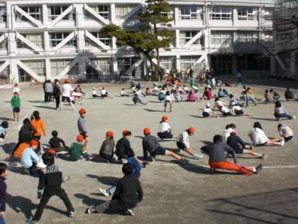 1月25日(月)〜2月5日(金)までの中休みに学校全体で5分間走に取り組んでいます。毎日、しっかりと健康観察をしたあとに全員で準備体操をします。そのあとは、自分のめあてやがんばりカードをもとに校庭と近隣の道路を走ります。