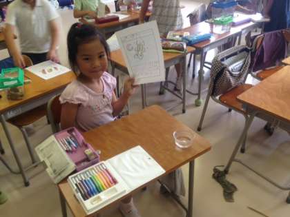 2年生は、先日救出したヤゴを各自が大事そうに飼い、観察カードを描いていました。愛情をもっているので、どの子供もじっくり観察して上手に描いていました。みんな嬉しそうにカードを見せてくれました。