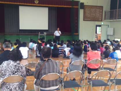 低学年は連れ去り防止、高学年は薬物乱用防止やネット被害について、ビデオ鑑賞、説話で学びました。