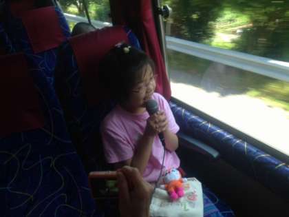 バスの中ではカラオケ大会が始まり、盛り上がりました。