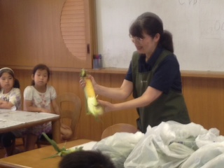 昨日7月1日の1時間目にランチルームで、2年生がとうもろこしの皮むきをしました。普段何気に食べているとうもろこし。たくさんのひげは一粒に一本ずつ生えているとのこと。栄養士の先生の話から初めて知ったことが多く子供たちもびっくりしていました。