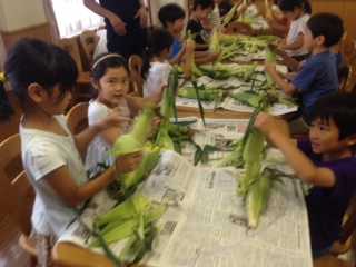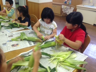 みんなでむいたとうもろこしはふっくらと蒸されて給食に出されました。