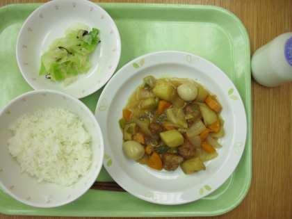 酢豚は、下味をつけた角切りの豚肉を使い、衣をつけて油で揚げ、甘酢あんをからませた中華料理です。酢の味が苦手な児童もいますが、頑張って食べてもらいたいと思います。