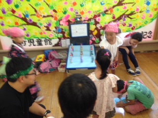 7月12日日曜日の午後2時から上町児童館でこどもまつりが開催されました。今年のテーマは、「パオパオアイランド〜海賊の宝をさがせ!〜」でした。館長さんも職員の方々も海賊の衣装で盛り上げていました。本校と桜小学校の新BOPの子供達がゲームや小物屋さんになり、自分達の店を運営していました。どの子もみんなが楽しめるようにと一生懸命でした。