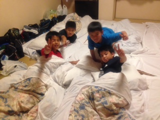 部屋に戻ってからは、寝る準備をしてゆっくりと10時まで過ごしていました。卓球室を見つけて、元気に汗をかいている子供もいました。全館貸し切りなので、気兼ね無くのびのび使わせていただいています。