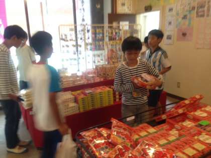 入浴前に宿の売店でお土産を買いました。明日の江戸村で使うお金も計算しながら、よく考えて買っていました。小学生用に値段を抑えたお土産ばかりで子供達も買いやすかったようです。