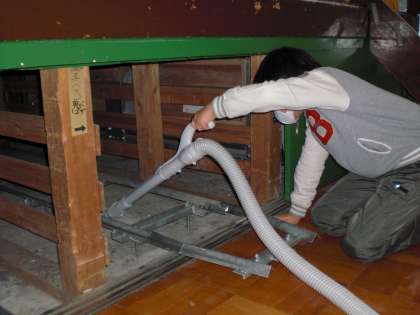 今年は、これまで体育や特別活動などの活動場所として使用してきた体育館を清掃しました。フロアだけではなく、舞台下やホール、ギャラリーなども清掃しました。これまで舞台下など掃除をしたことがなかったため、とてもやりがいのある清掃活動となりました。
