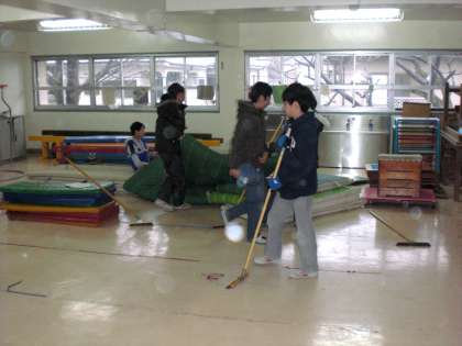 3月9日(火)に、6年生全員で体育館の清掃を行いました。