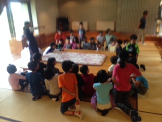 部屋に荷物を置いてから、布団の敷き方を指導してもらいました。