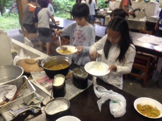 班毎に真剣にカレー作りに挑んでいる様子です。