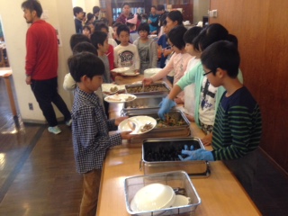 朝食の準備は、食事係の子供達が手際良く行いました。