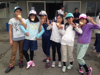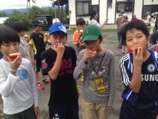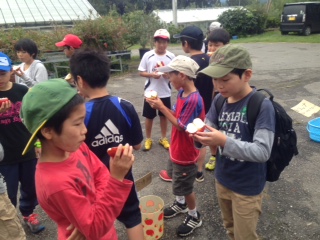 もいだりんごと同じ種類のりんごを一人半個ずつ食べました。甘くてみずみずしくてとっても美味しかったです。りんごの磨き方も教えていただき、食べた後はりんご磨きに夢中になっていました。