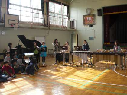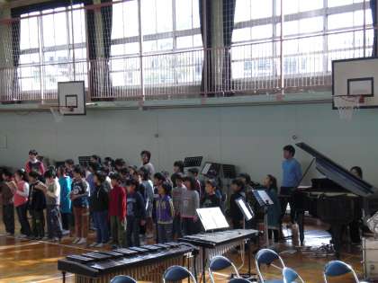 最後に音楽クラブが「浪漫飛行」を演奏してくれました。その演奏を聴きながら、今年度の音楽朝会を締めくくりました。