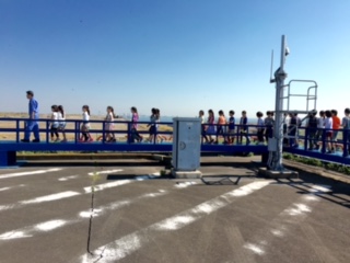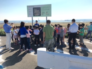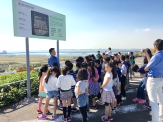 10月13日火曜日、晴天、今日は4年生の社会科見学です。4年生は社会で東京都を中心に学びます。ですから今日の見学は都内巡りです。初めの見学先は、江東区の中央防波堤ゴミ埋立処分場でした。まずは、バスに乗ったまま、30メートルも埋め立てた外側埋立地に行きました。車窓から様々な粗大ゴミの破砕も見ました。何と中央防波堤はあと50年でもう限界だそうです。それを聞いた子供達は、思わず自分の年に50足して、考えたような表情を浮かべていました。