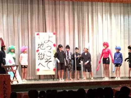 前半のトリは、5年生の「夢から醒めた夢」、後半最後の大トリは6年生の「じごくのそうべい」でした。さすが高学年らしく、笑いとペーソス、ダンス、歌を巧みに採り入れて観客を唸らせました。