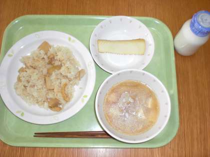 「里芋ごはん、いかの照り焼き、豚汁、牛乳」」です。