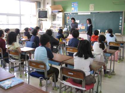 4月21日(水)に高学年の読み聞かせがありました。4年生の教室には4人のお母さんがみえ、本を読んでくださいました。都道府県名がダジャレになった絵本では笑いが飛び出し、楽しいひと時を過ごすことができました。本の好きな4年生。次の読み聞かせや図書の時間を楽しみにしています。