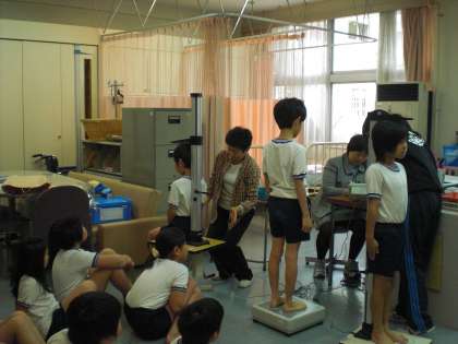 今日は、身体計測です。去年より身長は伸びているかな?体重は増えているかな?みんなわくわくしながら身長、体重、座高の測定をしました。
