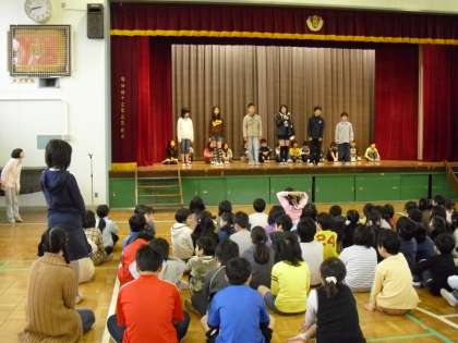 4月22日の児童集会で、平成22年度前期の委員会紹介がありました。初めに前期代表委員の13人の自己紹介があり、次に各委員会委員長により、環境美化・放送・図書・保険・運動・集会の順に所属委員と委員会活動の内容の紹介がありました。全校の前でしっかりとこれからの活動について発表を終えることができました。