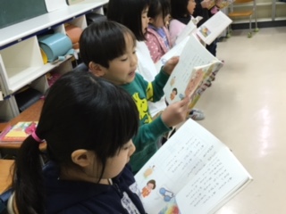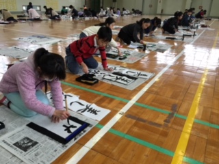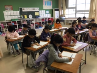 1年生の国語の時間では、詩の世界をリズムよく読んだり、動作化したりと楽しそうでした。2年生以上では、集中して書き初めに取り組んでいました。