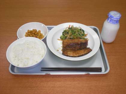 そして、7日(金)の給食は、ごはん・魚のかばやき風(さんま)・ぶどう豆、・菜のごまだれかけ・牛乳です。