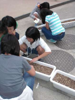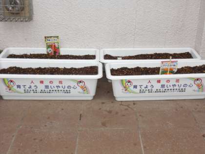 5月10日(月)の委員会の時間に、環境美化委員会の児童が、『マリーゴールド』『コスモス』『百日草』の種をまきました。玄関入り口付近にプランターを置きました。植物を育てる活動を通して、協力することや感謝することの大切さを感じてほしいと思っています。