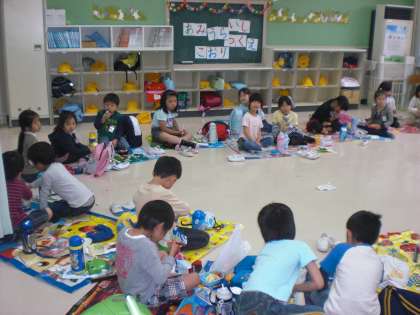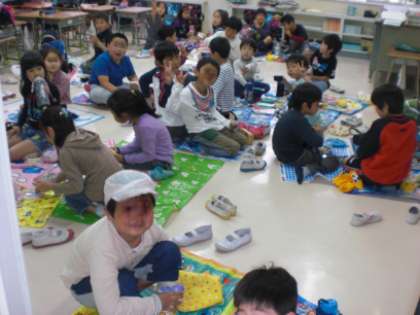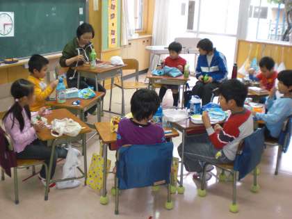 子どもたちは、それぞれの教室で気分は遠足そのもので、楽しそうにおいしいお弁当を食べていました。