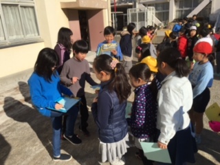 2月19日の朝、校庭でサイン集会を行いました。6年生が校庭の周りにスタンバイして、全校の子供たちが、色紙を持って回ります。なんと6年生たちは自分のサインをしっかり考え、練習をして臨んでいました。スター顔負けの素敵なサインばかりでした。