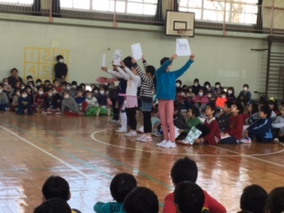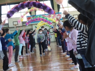 今日3月3日木曜日の3・4時間目に体育館で6年生を送る会を開催しました。6年生に感謝を込めて下学年が工夫した出し物を披露しました。3年以下の子供たちは卒業式に出られませんので、今日の会があるのです。花のアーチをくぐる時に司会をしている代表委員の子供に一人一人の良さを紹介され、嬉しそうでした。