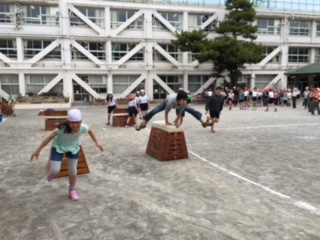 今日3月18日午後、6年生が企画運営し、他学年生を招待してのミニミニ運動会が開催されました。障害物走、棒引き、綱引き、追いかけ玉入れ、ドッジボールと学年毎に種目を変えて楽しみました。