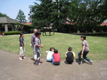 全部で5グループに分かれて、ボランティアさんに案内して頂きました。ちょうど開催中のフェリックス・ティオリエ写真展(19世紀末ピクトリアリズムの写真家)……モノクロ写真の世界です。そして建畠覚造氏の−アトリエの時間−を中心に鑑賞しました。また、ちょっぴり疲れたら外に出て芝生の上の作品にも目を向けました。世田谷美術館の収蔵作品はなんと11000点というお話も聞きびっくりしました。また「素朴派」と呼ばれているとても有名な作品にも出会えました。丁寧な案内の鑑賞リーダーさんに感謝して美術館を後にしました。